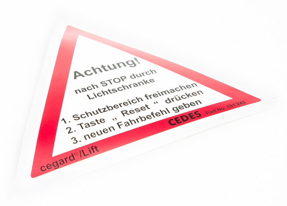 Kód:Varovný trojúhelník cegard/Lift "Reset"v němčině